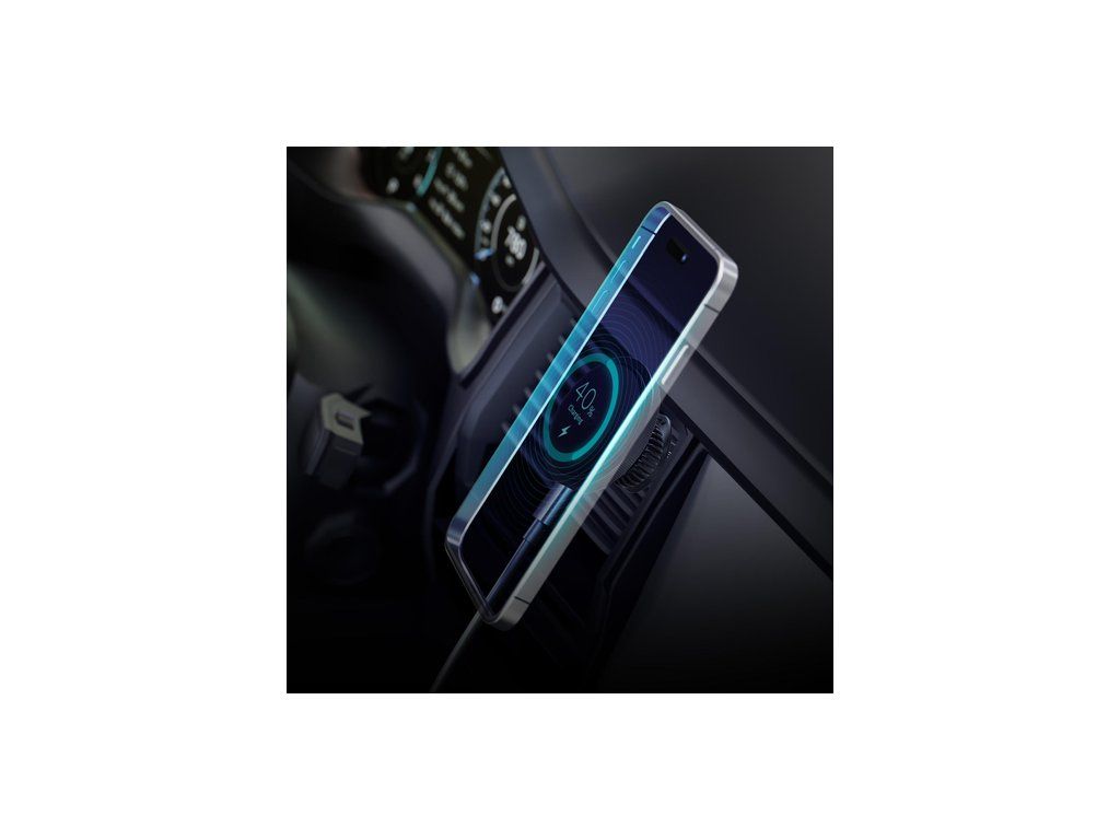 Držák je navržen s podporou MagSafe technologie, která zajišťuje přesné a pevné uchycení telefonu jedním pohybem. Integrované rychlé bezdrátové nabíjení až 15 W umožňuje průběžné dobíjení zařízení během jízdy, takže se nemusíte obávat vybití baterie ani na delších trasách.