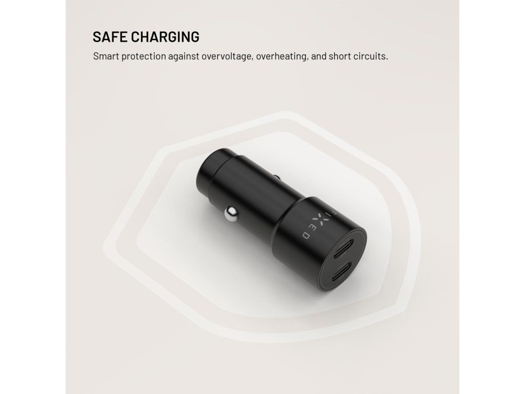 Autonabíječka FIXED se používá vložením do zásuvky zapalovače ve vozidle a následným připojením zařízení pomocí USB‑C kabelů (kabely nejsou součástí balení). Je vhodná pro nabíjení smartphonů, tabletů nebo jiných zařízení podporujících USB‑C PD, ať už jedete do práce, na výlet nebo na služební cestu.