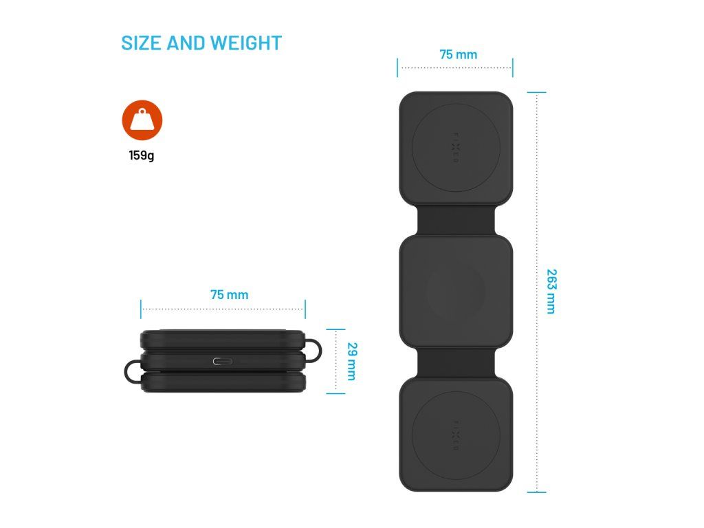 Díky skládací konstrukci je nabíječka ideální nejen na pracovní stůl nebo noční stolek, ale i na cesty. Po složení zabere minimum místa a snadno ji přenesete v tašce nebo batohu. Nabíjecí výkon až 15 W pro telefon, 15 W pro další zařízení a 3 W pro menší příslušenství zajišťuje efektivní doplnění energie.