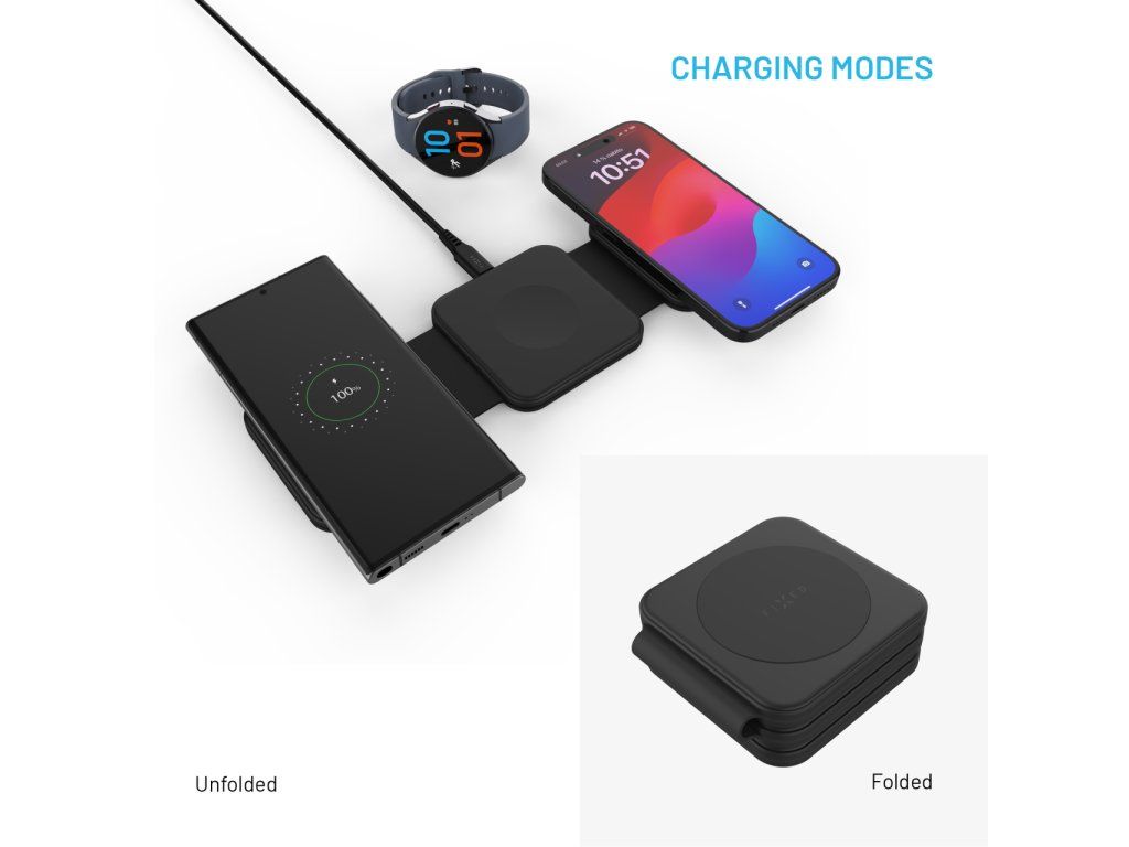 Bezdrátová nabíječka 3v1 FIXED Flex pro Samsung skládací 15W černá