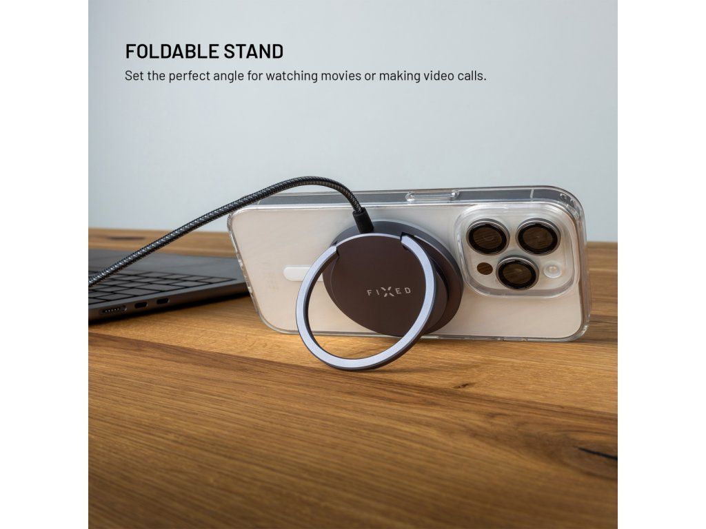 Bezdrátová nabíječka FIXED MagPad Pro Qi2 s MagSafe a stojánkem 15W šedá