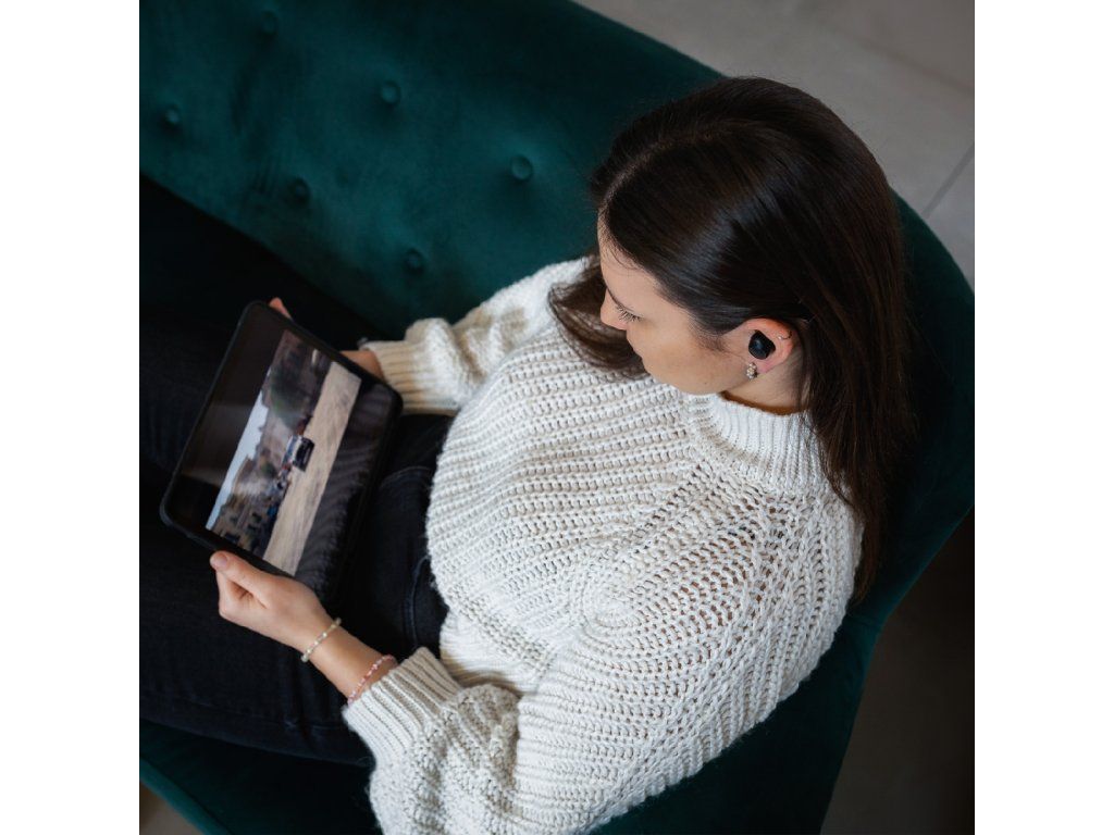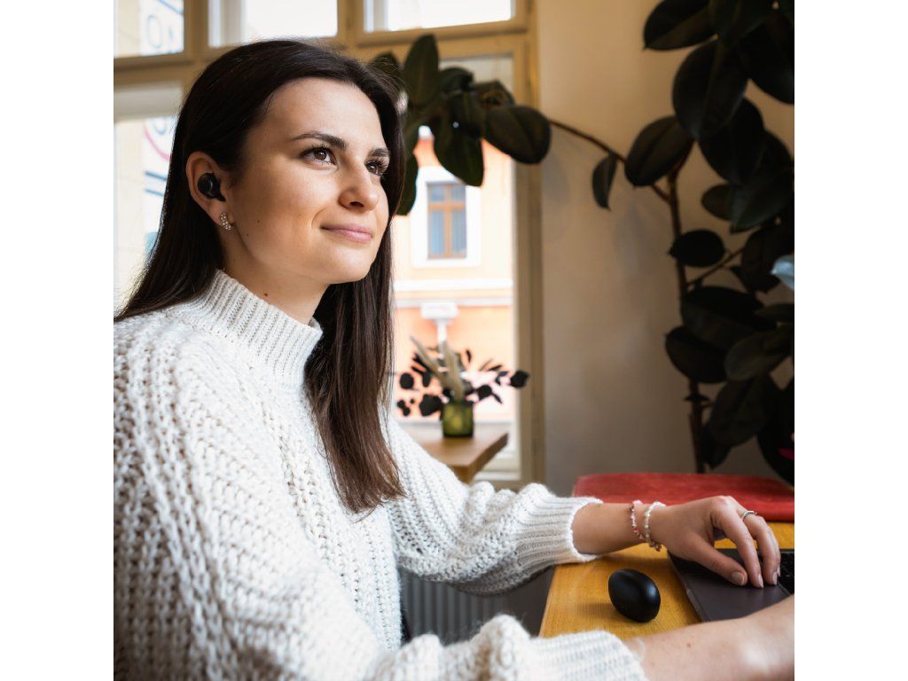 - Plně bezdrátové provedení (TWS) – žádné kabely, maximální volnost