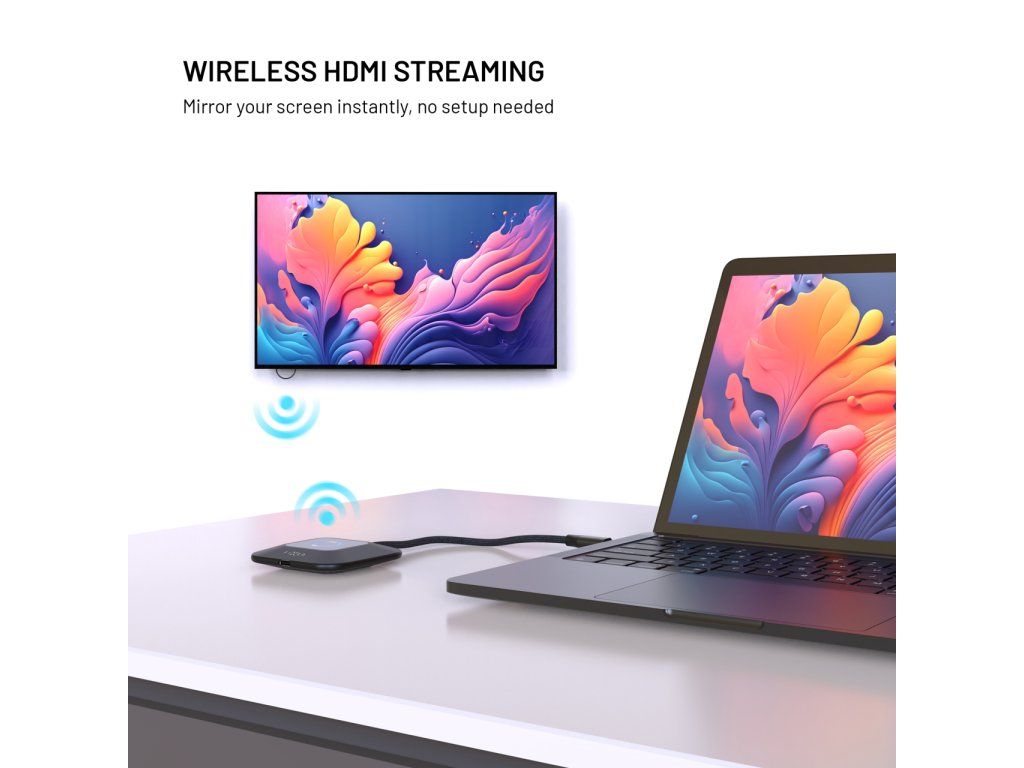 Díky podpoře bezdrátového přenosu HDMI je ideální pro prezentace, sledování videí, práci i domácí zábavu. Součástí je také podpora Power Delivery 3.0 s výkonem až 100 W, která umožňuje současné napájení připojeného zařízení při používání adaptéru.