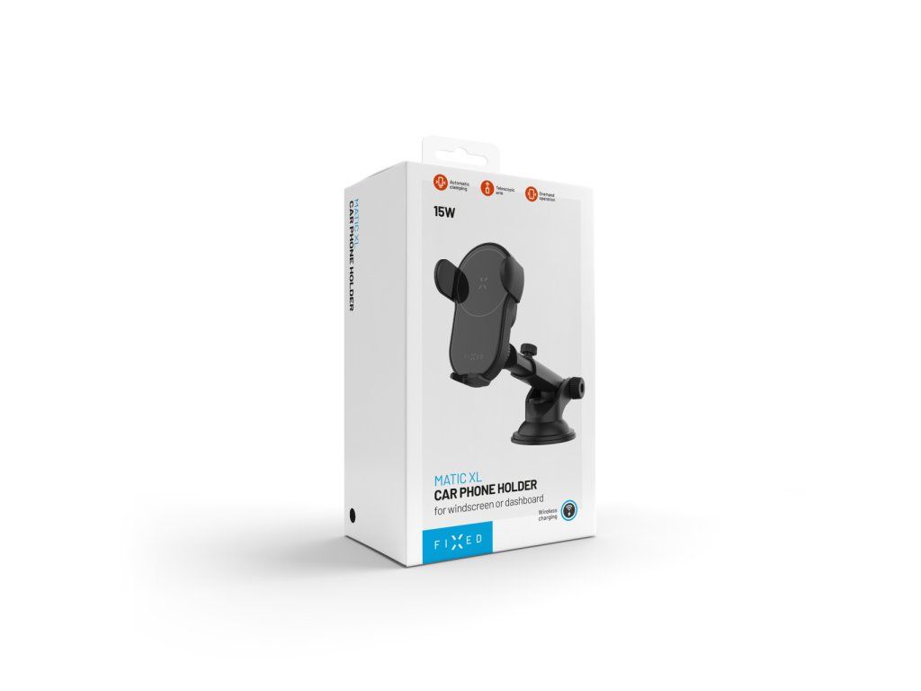 Automatický držák do auta FIXED Matic XL přináší pohodlí i během jízdy – spojuje bezpečné upevnění vašeho mobilního telefonu s rychlým bezdrátovým nabíjením až 15 W. Tento držák je navržen tak, aby poskytoval moderní funkce a flexibilní možnosti umístění přímo ve vašem voze.