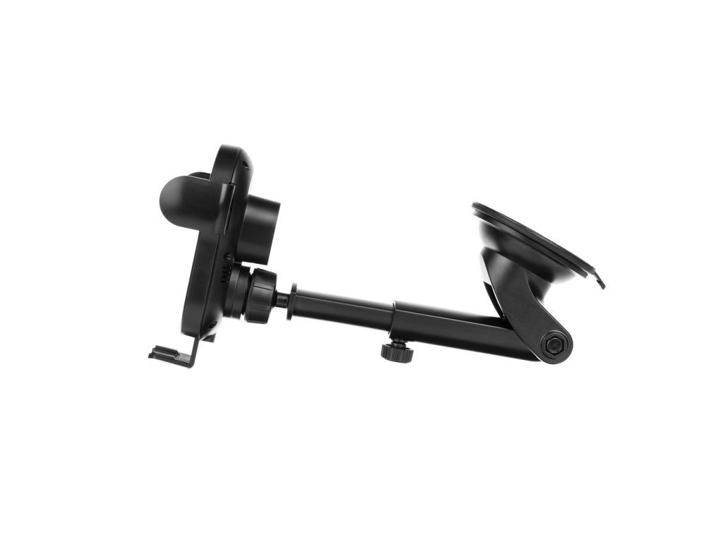 Držák slouží k bezpečnému uchycení mobilního telefonu ve voze a k jeho bezdrátovému nabíjení během jízdy. Snadno jej připevníte na palubní desku nebo čelní sklo pomocí pevné přísavky a nastavíte tak optimální pozici telefonu pro navigaci, hands‑free hovory či přehrávání médií. Automatické sevření kleští umožňuje pohodlné vložení telefonu jednou rukou a rychlé bezdrátové nabíjení zajišťuje, že během jízdy zůstane baterie vždy dostatečně nabitá.
