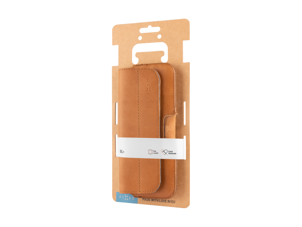 Horizontální kožené pouzdro FIXED Posh se zavíráním, velikost 6XL+, hnědé
