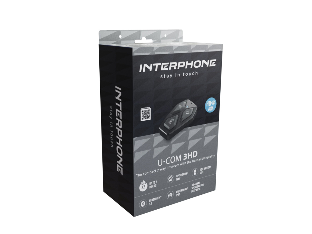 Interphone U-com 3HD je interkom na motorku navržený pro pohodlnou komunikaci a poslech během jízdy. Umožňuje bezdrátové propojení s mobilním telefonem, díky kterému můžete snadno vyřizovat hovory, poslouchat hudbu nebo přijímat navigační pokyny bez nutnosti zastavení.