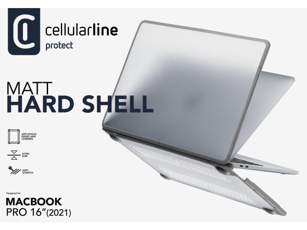 Ochranný kryt Cellularline Matt Hard Shell je navržen přesně pro Apple MacBook Pro 16" (2021) a poskytuje spolehlivou ochranu při každodenním používání. Díky pevné konstrukci z polykarbonátu chrání zařízení před poškrábáním, nárazy i běžným opotřebením, aniž by výrazně zvyšoval jeho objem.