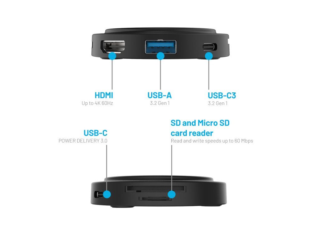 MagHUB se zapojí do USB‑C portu vašeho zařízení a poskytuje rozšíření o různé porty pro připojení periferií i bezdrátové nabíjení telefonu nebo jiného kompatibilního zařízení. Hodí se pro pracovní stanice, domácí kancelář i mobilní práci, kdy potřebujete mít více portů a bezdrátové nabíjení na dosah.