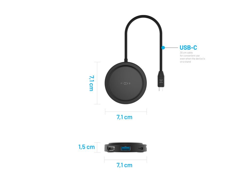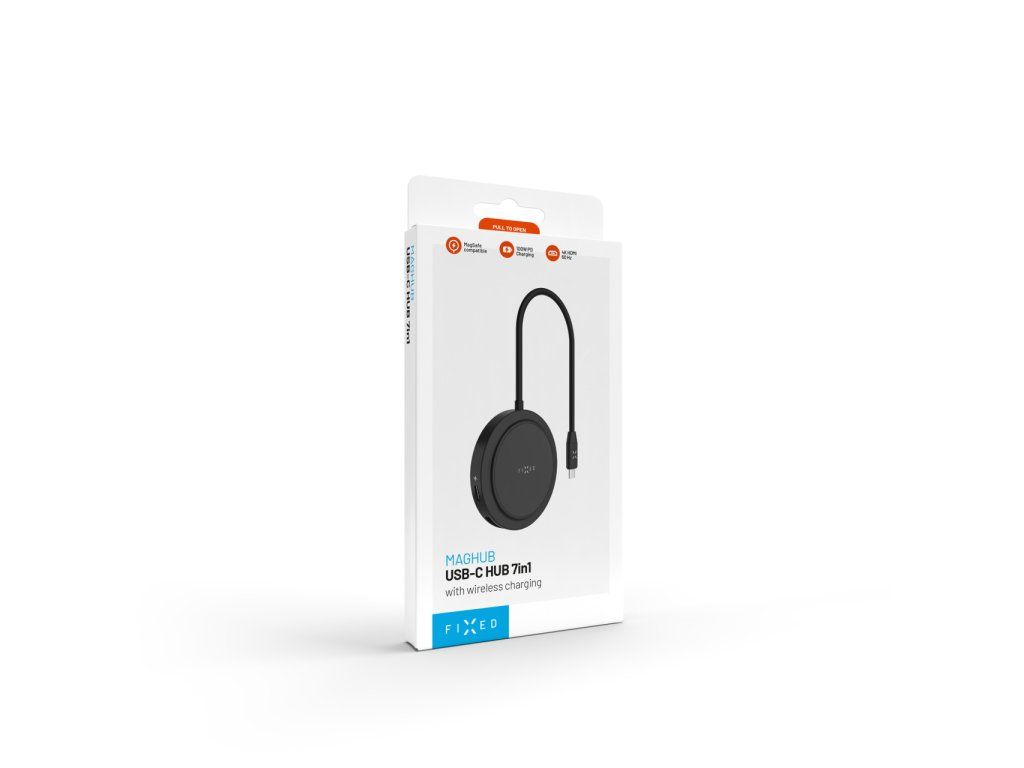 USB‑C hub FIXED MagHUB 7‑portový s bezdrátovým nabíjením, černý
