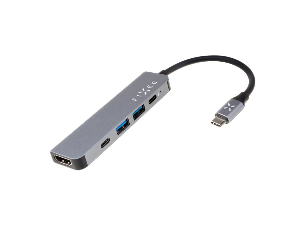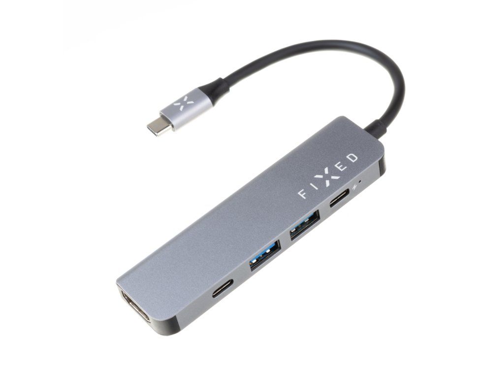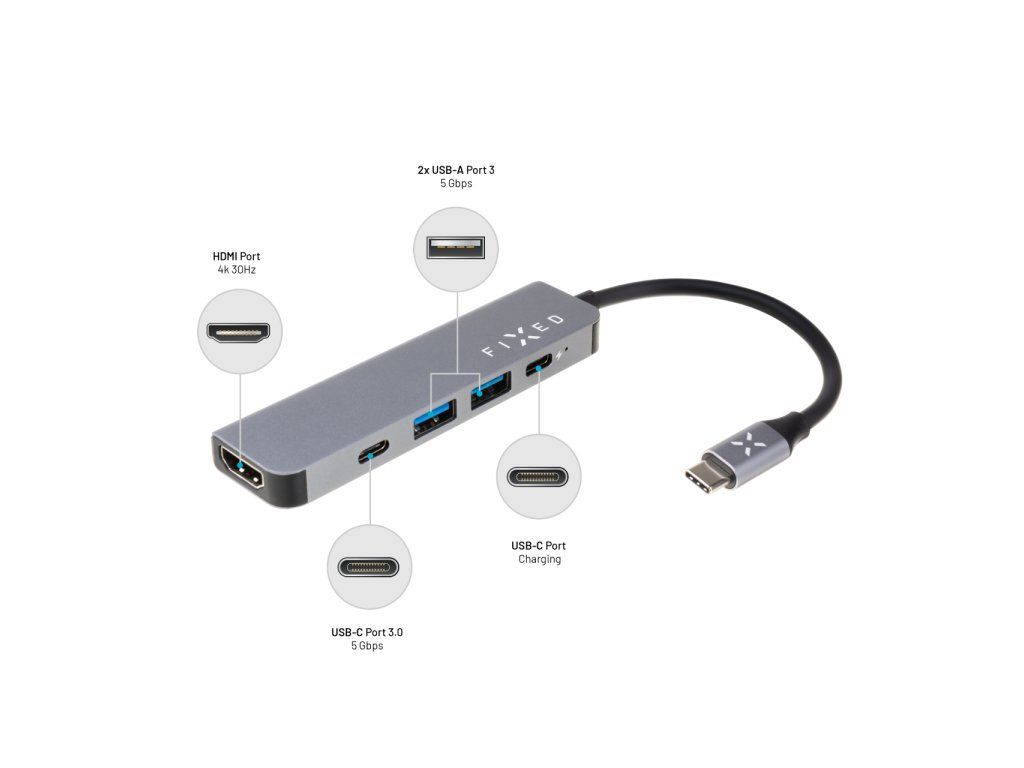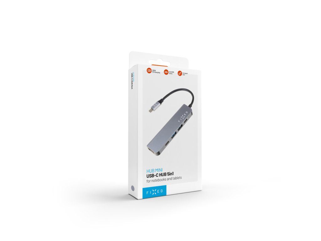 USB-C hub FIXED Mini 5-portový, hliníkový, šedý